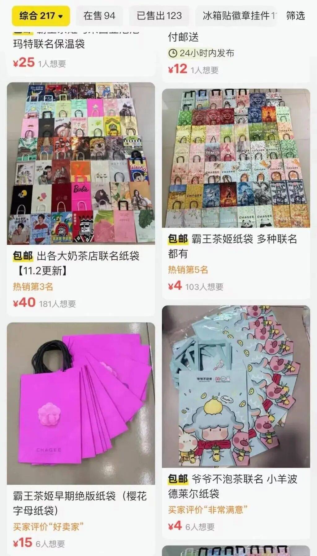 ,奶茶在二手交易平台上,包装一种看似不起眼的人花商品悄然走红:奶茶袋子